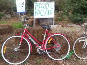 Walk into a wild hippy garden with chickens hunting for food, cats sleeping and cabbage butterflies fluttering all around. The bike exchange also greets you, and what a fabulous, practical yet quirky idea! If you need a bike take one, if you have a spare bike, donate one. Love it.